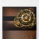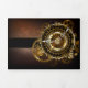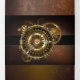 Antique, fantastic watches with gold and brass gears on a brown, rusty background. Steampunk style.
