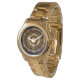 Antique, fantastic watches with gold and brass gears on a brown, rusty background. Steampunk style.
