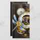 Antique dials with gold and brass gears, decorated with mechanical dragonfly on brown, striped background. Steampunk.