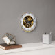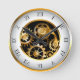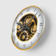 Antique dials with gold and brass gears, decorated with mechanical dragonfly on brown, striped background. Steampunk.
