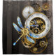 Antique dials with gold and brass gears, decorated with mechanical dragonfly on brown, striped background. Steampunk.