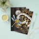 Antique dials with gold and brass gears, decorated with mechanical dragonfly on brown, striped background. Steampunk.