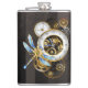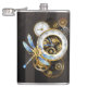 Steampunk Clock with Mechanical Dragonfly Hip Flask