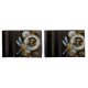 Antique dials with gold and brass gears, decorated with mechanical dragonfly on brown, striped background. Steampunk.