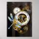 Steampunk Clock with Mechanical Dragonfly Poster