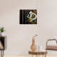 Antique dials with gold and brass gears, decorated with mechanical dragonfly on brown, striped background. Steampunk.