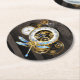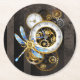 Steampunk Clock with Mechanical Dragonfly Round Paper Coaster