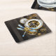 Steampunk Clock with Mechanical Dragonfly Square Paper Coaster