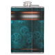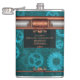 Steampunk, copper on teal gearwheels, Monogram Hip Flask
