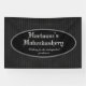 Versatile banner features dark grey striped background with centre custom text oval and is both masculine and elegant.  Perfect for a variety of Steampunk, Victorian, vintage and gothic themed parties, events, stores and more.