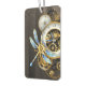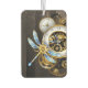 Antique dials with gold and brass gears, decorated with mechanical dragonfly on brown, striped background. Steampunk.