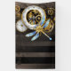 Antique dials with gold and brass gears, decorated with mechanical dragonfly on brown, striped background. Steampunk.