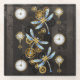 Steampunk Dragonflies on brown striped background Glass Coaster