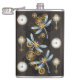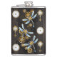 Steampunk Dragonflies on brown striped background Hip Flask