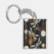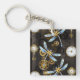 Steampunk Dragonflies on brown striped background Keychain