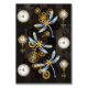 Antique dials and keys with gold and brass gears, decorated with mechanical, steampunk dragonflies on brown, striped background.