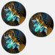 Steampunk firefly with blue transparent wings and green light bulb on worn, brown, textured background. Steampunk style.