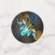 Steampunk firefly with blue transparent wings and green light bulb on worn, brown, textured background. Steampunk style.