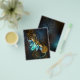 Steampunk firefly with blue transparent wings and green light bulb on worn, brown, textured background. Steampunk style.