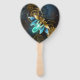 Steampunk firefly with blue transparent wings and green light bulb on worn, brown, textured background. Steampunk style.