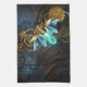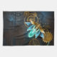 Steampunk firefly with blue transparent wings and green light bulb on worn, brown, textured background. Steampunk style.