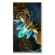 Steampunk firefly with blue transparent wings and green light bulb on worn, brown, textured background. Steampunk style.