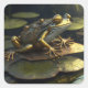 Gold metal gears and frog on a lily pad steampunk AI generated art.
