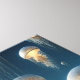 A steampunk ancient futuristic city with floating glowing jellyfish floating in the surrounding skies with flowing water and moonlight incorporated with the design.