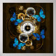 Steampunk Gears and Blue Butterflies Poster