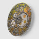 steampunk gears cogs vintage machine clock. For lovers of the steam punk genre this mix of cast iron metal, shiny and dull metallic watch engine clock is a dream gift. The ancient looking gears and cogs of the clock and the vintage iron numbers on a rusty gold panel make this mechanical engine clock an easy to read yet interesting machine and a perfect victorian steampunk gift. Available in small and large round clock or square clock