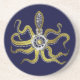 This tentacled steampunk sea monster has eight wire-like gold appendages, a central silver gear and plenty of gears and bolts making up its head, eyes and suction cups. It's a robot octopus / kraken, a metal machine monster for anyone who likes geeky science-fiction / fantasy creatures. Dark-blue background colour is customizable.