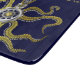 The tentacled steampunk sea monster on this custom cutting board has eight wire-like gold appendages, a central silver gear and plenty of gears and bolts making up its head, eyes and suction cups. It's a robot octopus / kraken, a metal machine monster for anyone who likes geeky science-fiction / fantasy creatures. Blue background colour and text is customizable (or delete sample text to leave it blank).