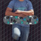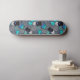 Grey and blue vintage steampunk skulls, gears and butterflies print skateboard