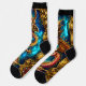 Steampunk Golden Dragon & Blue Sky on Black Socks