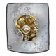 Conceptual, mechanical, human head with antique manometer and metal gears against grey industrial background. Steampunk style.