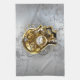 Conceptual, mechanical, human head with antique manometer and metal gears against grey industrial background. Steampunk style.