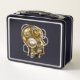Steampunk head with manometer metal lunch box