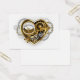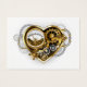 Mechanical, volumetric, steampunk heart with pressure gauge, steel and gold gears on white background. Steampunk style.