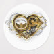 Mechanical, volumetric, steampunk heart with pressure gauge, steel and gold gears on white background. Steampunk style.