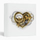 Mechanical, volumetric, steampunk heart with pressure gauge, steel and gold gears on white background. Steampunk style.