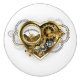 Mechanical, volumetric, steampunk heart with pressure gauge, steel and gold gears on white background. Steampunk style.