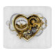 Mechanical, volumetric, steampunk heart with pressure gauge, steel and gold gears on white background. Steampunk style.