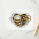 Mechanical, volumetric, steampunk heart with pressure gauge, steel and gold gears on white background. Steampunk style.