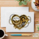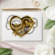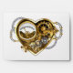 Mechanical, volumetric, steampunk heart with pressure gauge, steel and gold gears on white background. Steampunk style.