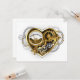 Mechanical, volumetric, steampunk heart with pressure gauge, steel and gold gears on white background. Steampunk style.