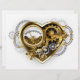 Mechanical, volumetric, steampunk heart with pressure gauge, steel and gold gears on white background. Steampunk style.