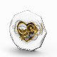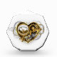 Mechanical, volumetric, steampunk heart with pressure gauge, steel and gold gears on white background. Steampunk style.