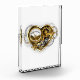 Mechanical, volumetric, steampunk heart with pressure gauge, steel and gold gears on white background. Steampunk style.