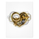 Mechanical, volumetric, steampunk heart with pressure gauge, steel and gold gears on white background. Steampunk style.
