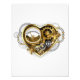 Mechanical, volumetric, steampunk heart with pressure gauge, steel and gold gears on white background. Steampunk style.